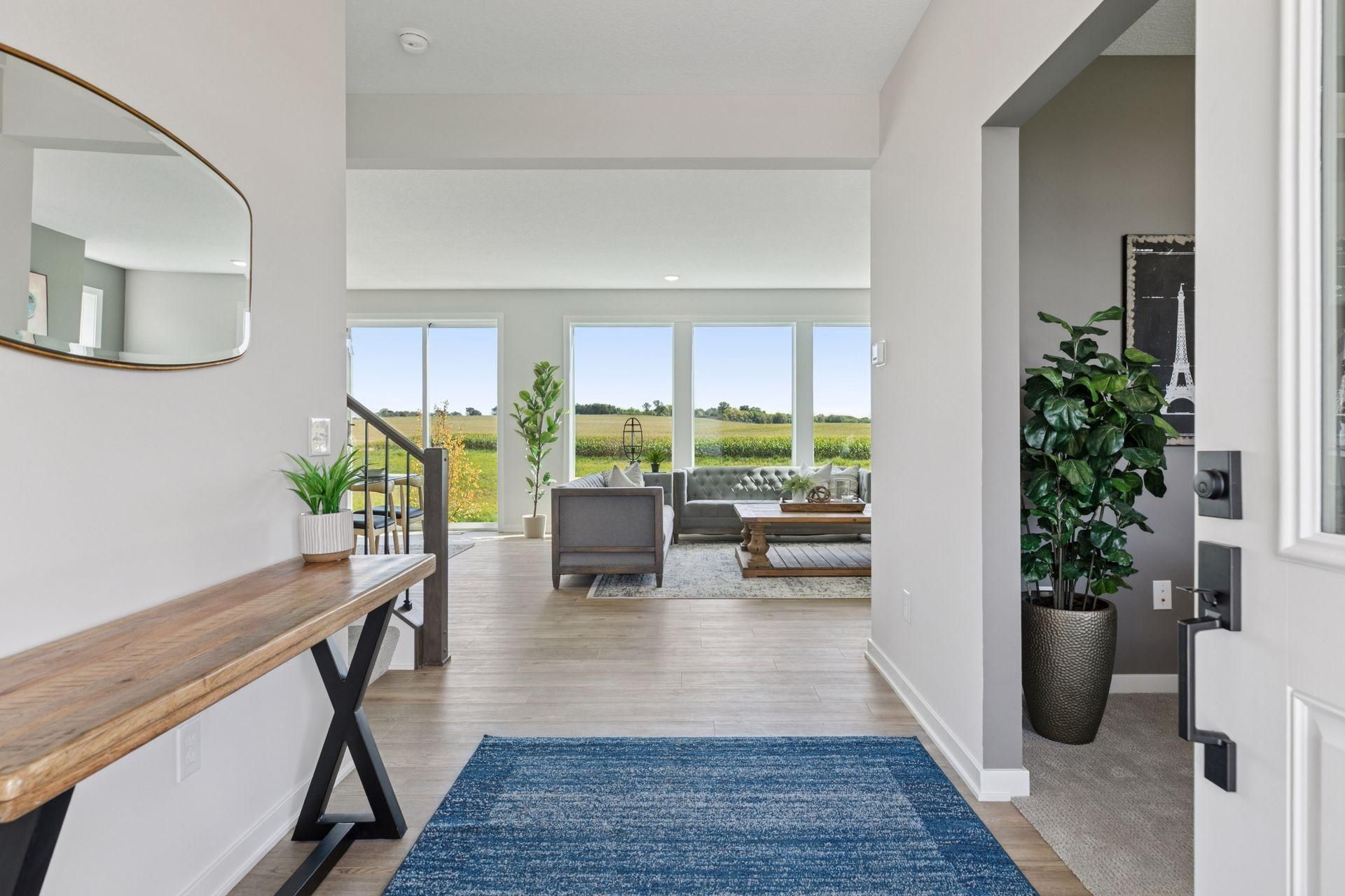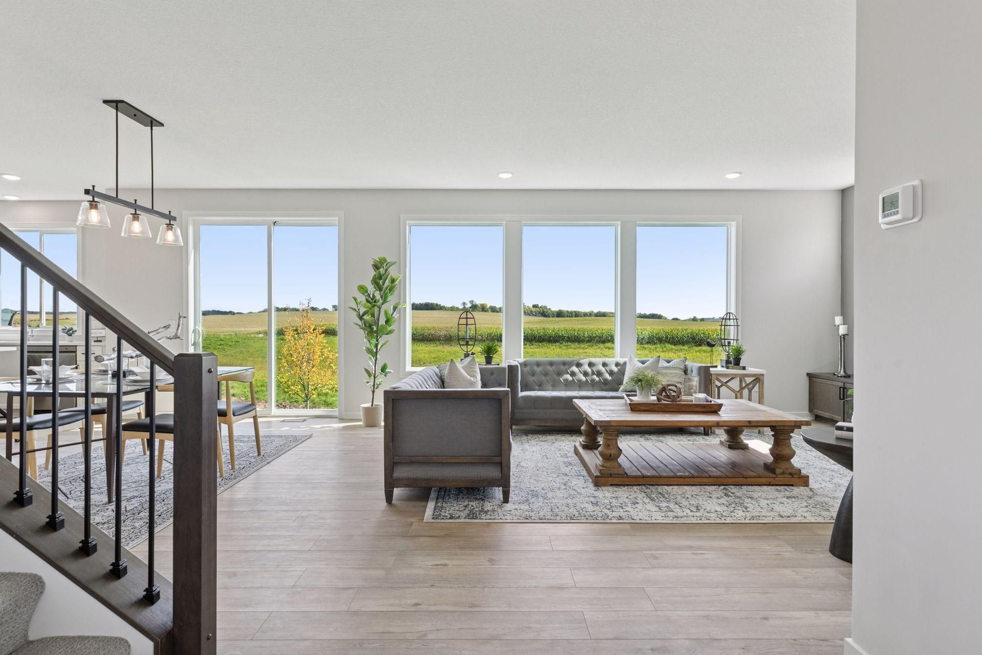 Located in Waypointe of Woodbury, this beautiful two-story home overlooks an 8-acre pond and has terrific southern views. James Hardie fiber cement siding and Pella windows make a great start. Main level has a private home office then open to family room with a gas fireplace, dining with eight-foot-tall patio door and spectacular kitchen with quartz counters and stainless-steel energy star appliances. Great sized mud room with built-in bench, closet and powder bath. Upstairs you will find four bedrooms and two bathrooms. Primary suite located with tremendous views overlooking the eight-acre pond.
