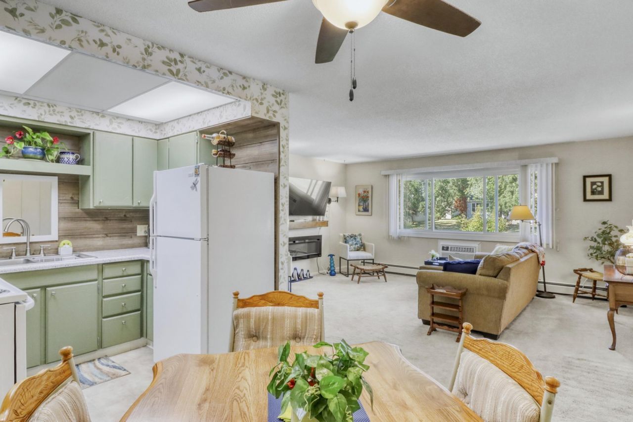 Step into this beautifully 2-bedroom, 1-bath condo that blends modern updates with cozy charm. Perfectly suited for downsizers. This home offers a smart layout and thoughtful finishes throughout. Restricted to buyers that are 55 years old or older. The bright, open-concept living and dining area welcomes you and creates a warm and inviting atmosphere. The recently renovated bathroom showcases modern fixtures and a clean, timeless design that adds a touch of elegance.Both bedrooms are spacious and filled with natural light, offering generous closets for all your storage needs. This condo has shared laundry and dedicated storage space. This condo offers easy access to shopping, dining, parks, and school. It's a standout opportunity for anyone seeking comfort and value.This condo checks all the boxes. Schedule your showing today and see why this gem won't last long! This is a smoke free condo.