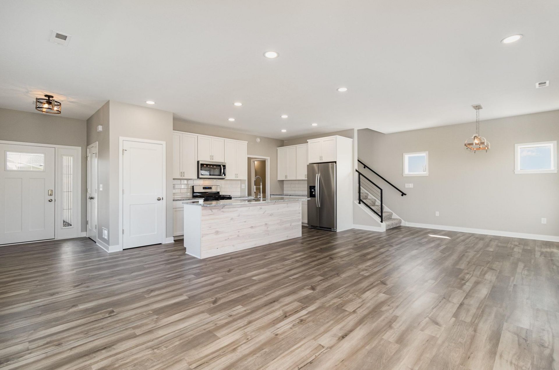 Stunning new construction 2 level home makes for convenient living and classy lifestyle with beautiful upgrades: Luminating natural lighting, 9' ceilings, recessed dimmer/night lighting, granite & quartz counters, center island with pop up electrical/wireless phone port, soft close dove tail drawers/cabinets, undermount sink design with a slider cutting board, SS appliances. A beautiful focal gas fireplace for cozy evenings, durable cable handrails, 2 panel solid doors, Schlage interior/exterior handles, primary master with large walk in closet, private water closet, custom tiled walk in shower with quartz bench, glass shower door, undermount duel quartz vanity with duel custom linen towers. Attached fully insulated and sheet rocked garage, insulated doors with grille windows, electric car outlet, My Q Smart opener, & attached key pad. Can not rebuild with these upgrades for this price.