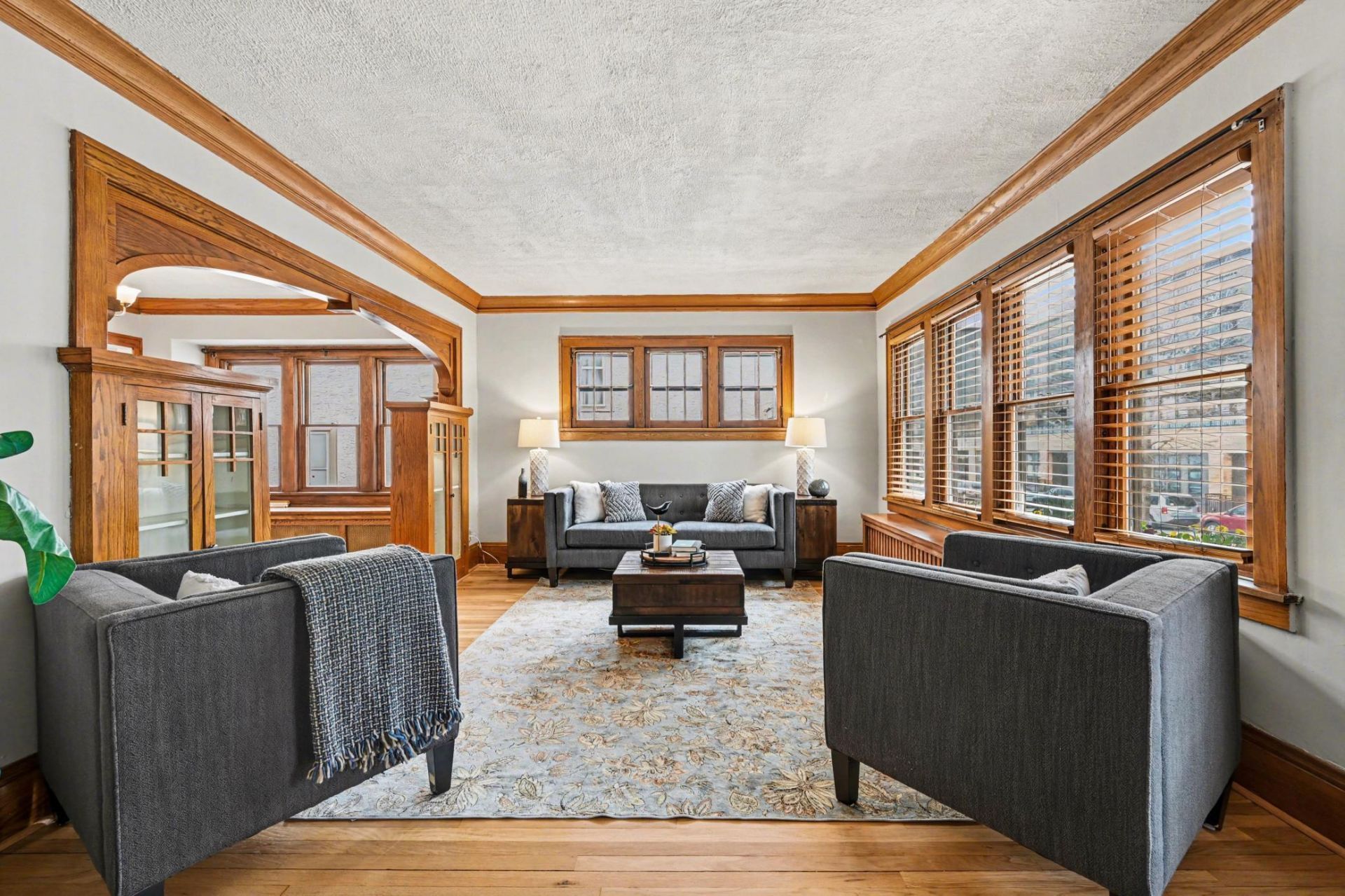 True duplex with separate utilities, as well as separate front entrances and a shared rear hallway connecting both units to the basement. This classic 1920s property showcases the charm buyers love?beautiful natural woodwork, hardwood floors, built-in buffets, and a cozy dining room window seat. Excellent location?walk to Whole Foods, Macalester College, and enjoy easy access to the A Line and light rail.With a larger footprint than many duplexes, each unit offers generous living spaces including an oversized living room, formal dining room with built-in buffet, two bedrooms, and a sunroom accessed through a bedroom. Both units feature hardwood floors and ceramic tile bathrooms.The main level highlights rich natural woodwork, shelving with glass doors, and a rich archway between the living and dining rooms. The main level updated kitchen includes maple cabinetry, quartz countertops (2026), and a new stainless steel stove (2026).The upper unit features painted trim, a faux fireplace in the living room, and a classic kitchen ready for your updates?an excellent opportunity for an owner-occupant to build equity while generating rental income.The basement is unfinished and includes a full drain tile system and sump pump, offering potential for additional finished space, as well as individual washers and dryers for each apartment. (There is a sheetrocked room in basement that used to be a darkroom with lots of outlets). See supplement for list of updates. Roof (2022), Boiler (2026), (2nd boiler older) Main floor windows (2022). Upper unit will be vacant May 31