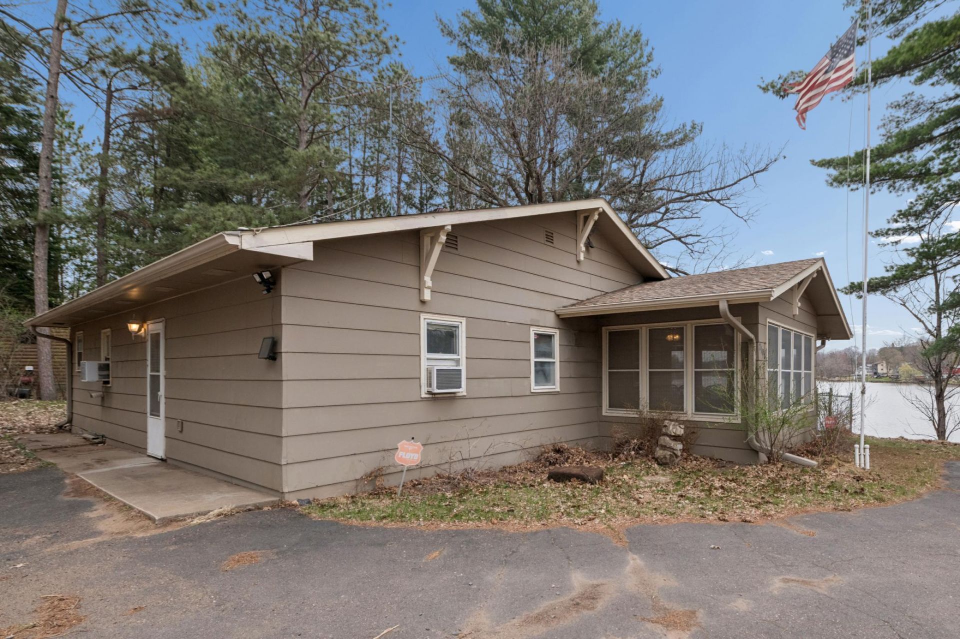 Welcome to your private lakeside retreat on Knife Lake in Mora! This charming 2 bedroom, 1 bathroom cabin/home offers true one-level living with an inviting open floorplan, highlighted by tongue and groove finishes throughout. Spend cozy nights in after a day of fishing alongside the pellet stove fireplace and take in stunning lake views through the large picture window that fills the space with natural light. The kitchen offers eat-in dining space, a dishwasher, and plenty of cabinet space. Enjoy a stackable washer and dryer on the main level, adding to the everyday convenience! The second bedroom offers direct access to the large lakeside deck overlooking the bay, or relax in the window-lined porch designed to bring the outdoors in. The roll-in dock makes it easy to get on the water, whether you're casting a line for a crappie or walleye or simply soaking in the peaceful surroundings. Set on a private, tree lined lot, this property also includes an additional 4 acres across the road! A large detached garage, shed and fenced in yard provide ample storage and functionality. Additional features include a reverse osmosis system, water softener, dishwasher, unfinished basement, private sewer, and gutter helmet system! Located just minutes from two boat launches, a local gas station/bait shop, and dining options. Whether you're looking for a weekend getaway or a full-time lake home, this Knife Lake gem delivers true one level living!