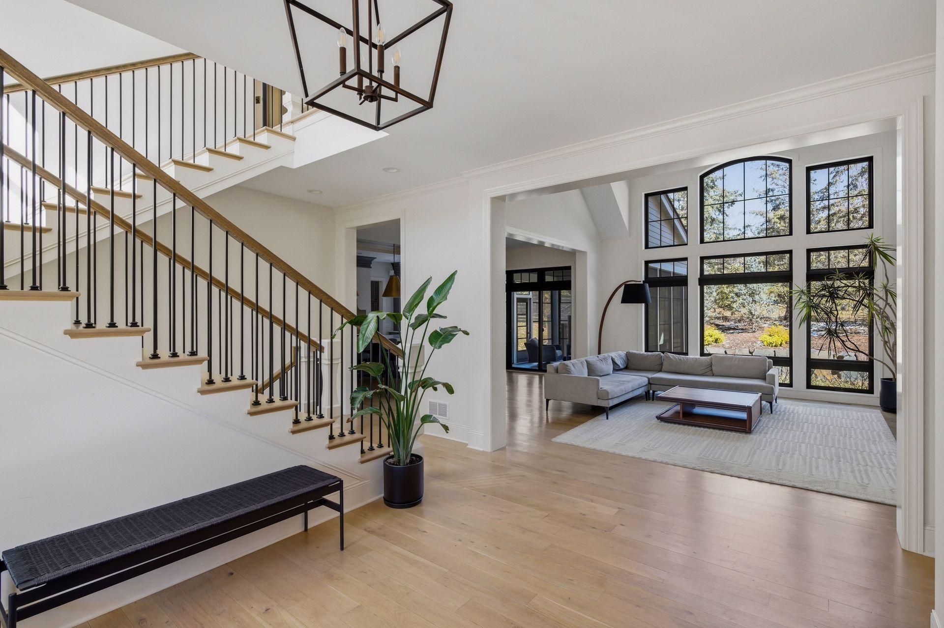 Exceptional custom home offering over 5,400 finished square feet of thoughtfully designed living space ina prime West St. Paul location. Bright, open interiors feature white oak floors, a dramatic two-storygreat room, and a warm mix of painted and natural wood finishes.The kitchen is built for gathering with high-end appliances, full-height cabinetry, and a large centerisland, plus a walk-in pantry with workspace. The main-level primary suite includes a spacious walk-incloset and a spa-like bath with heated floors, tiled shower, and soaking tub. A 3-season porch withEZ-screens provides a comfortable extension of the living space.Upstairs features two bedroom suites with private baths and walk-in closets, along with a flexible bonusroom. The lower level offers a fitness area, family room with wet bar and island, plus an additionalbedroom and bath.Set on over a half-acre with mature trees, the property now includes a sport court basketballarea?perfect for recreation and entertaining.