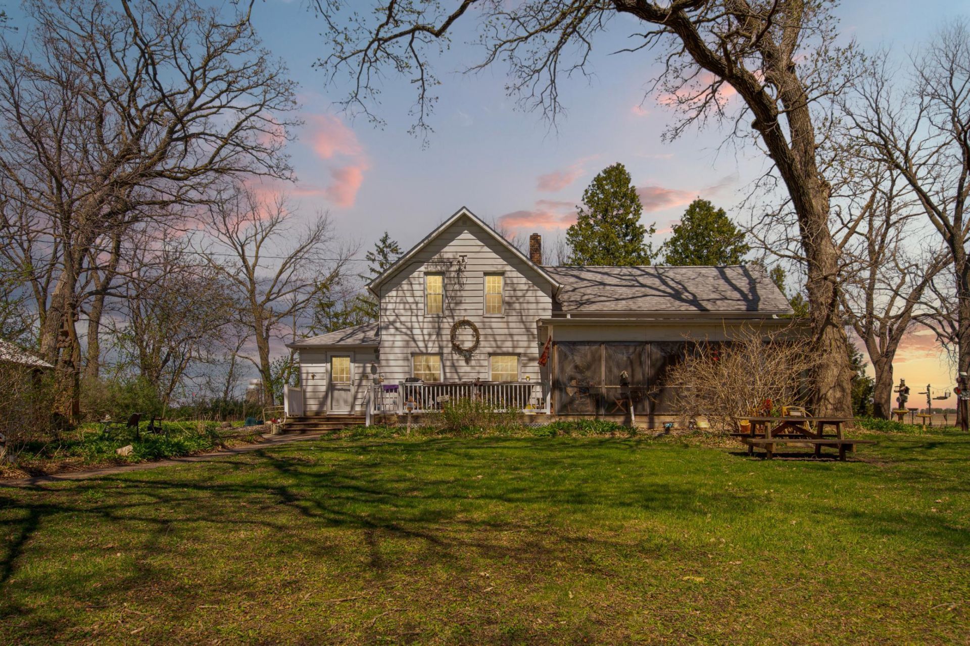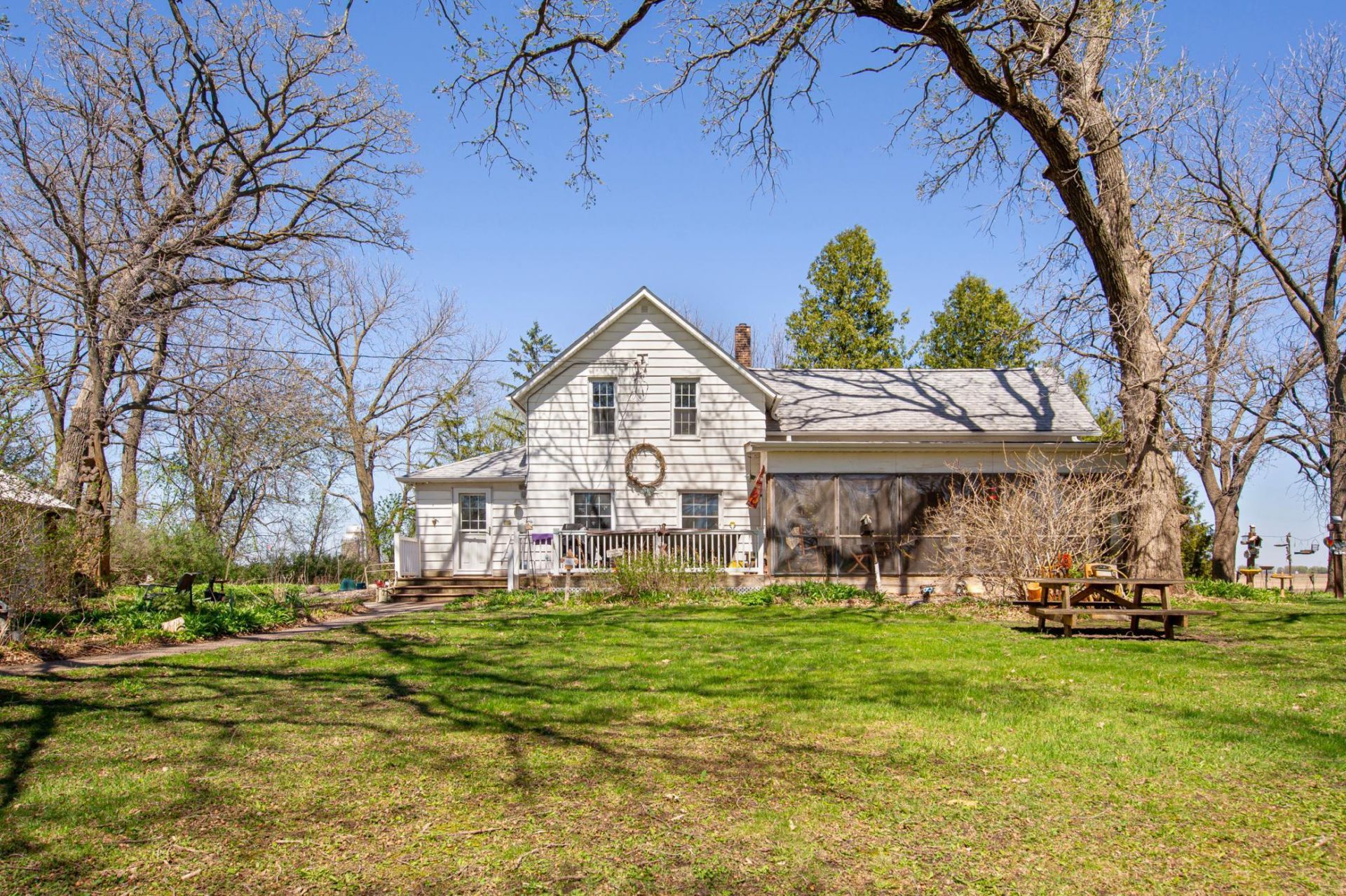 Location, Location, Location! If being close to town while enjoying the peace of the countryside is what you're after, this is the place to be. This beautifully treed 7.4-acre property offers the perfect balance of convenience and privacy, tucked away just off a paved road and nestled into your own serene oasis. A paved driveway welcomes you in, setting the tone for what lies ahead, mature trees, acres of wildflowers, and a setting that truly feels like your own private paradise. The property features charming outbuildings you'll instantly appreciate, including a classic granary with a newer steel roof and an awe-inspiring barn full of character. They simply don't build them like this anymore. The barn is in remarkable condition and boasts an enormous hayloft, so impressive it could rival a dance hall. The home offers true country charm with main floor laundry being an added modern convenience. You'll find two bedrooms on the main level and one upstairs plus a bonus room also located on the second floor, providing plenty of space for family or guests. One of the standout features is the large screened/windowed three-season porch, a favorite gathering spot for all who visit. Sit back, relax, and enjoy the gentle country breeze while taking in the natural surroundings. Keep an eye out for deer, pheasants, wild ducks, and even the occasional eagle sighting. Additional highlights include a compliant septic system and a well that has been tested annually by conscientious owners, giving you added peace of mind. This is more than a property, it's a lifestyle. Come experience it for yourself.