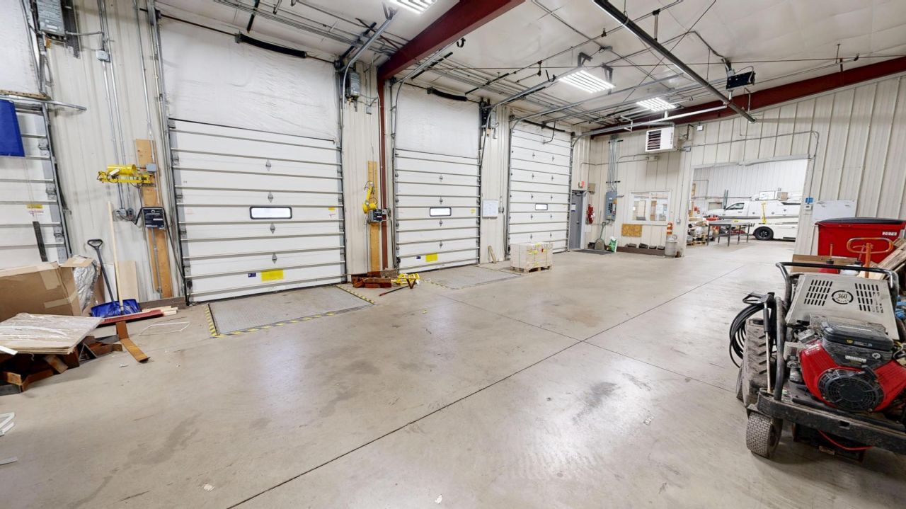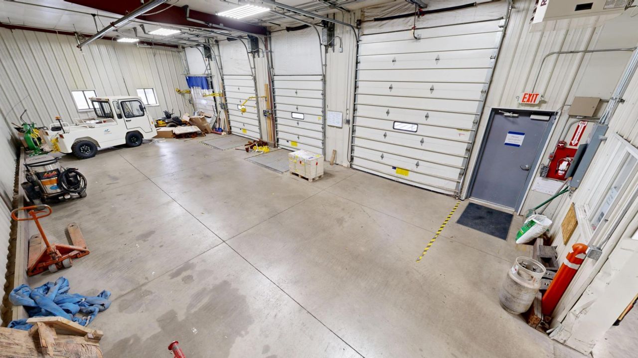 Substantial industrial complex expansive square footage on main floor plus mezzanine. Offering a comprehensive environment for diverse operational needs. The ground floor, houses a spacious environment for many industrious uses with high ceilings, accommodating a fleet of specialized fixtures and equipment. The facility's design incorporates ample storage areas, facilitating efficient inventory management.The mezzanine contains additional storage, office spaces, and possibly areas for parts and such. Throughout the building, the walls are clad in white metal panels, creating a bright, clean atmosphere enhanced by abundant fluorescent lighting. Concrete flooring throughout provides durability for heavy machinery and high traffic.The space is equipped with modern amenities, including overhead doors for easy vehicle access, climate control systems, and necessary safety features such as fire extinguishers, fire suppression sprinkler system and clearly marked exits. Workstations are strategically placed, suggesting areas dedicated to administration and operational planning.This versatile facility is well-suited for industries requiring significant storage capacity, vehicle maintenance, and logistical operations. The layout emphasizes functionality and efficiency, making it an ideal setting for businesses in transportation, warehousing, or equipment servicing sectors and much more.