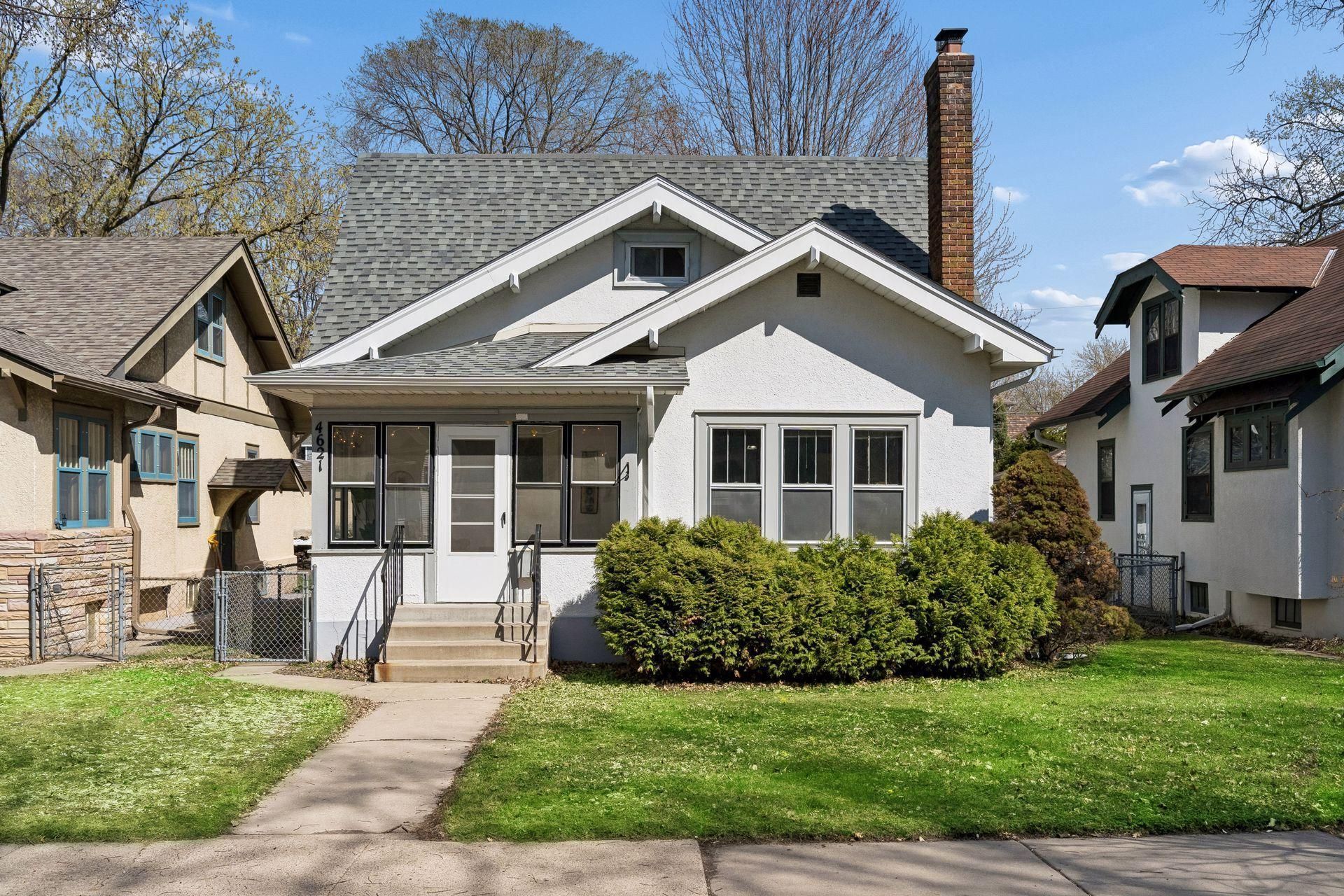 Welcome to this Tangletown gem! This classic bungalow features beautiful hardwood floors, built in buffet and wood burning fireplace. Two bedrooms and full bathroom on the main floor. Fabulous front porch offers_ a great space for enjoying your morning coffee or evening wind down with a sunset view. Upstairs, two more spacious bedrooms, one with an attached half bathroom. Walkthrough closet with window connects the -two rooms. Large basement with high ceilings offers potential for finishing more space if desired, or enjoying ample utility/storage space. Backyard is fully fenced, attractively landscaped with generous patio. Walk around the corner to all of the great restaurants and shops on 46th and Grand, as well as convenient to multiple nearby shopping, Lake Harriet and more.