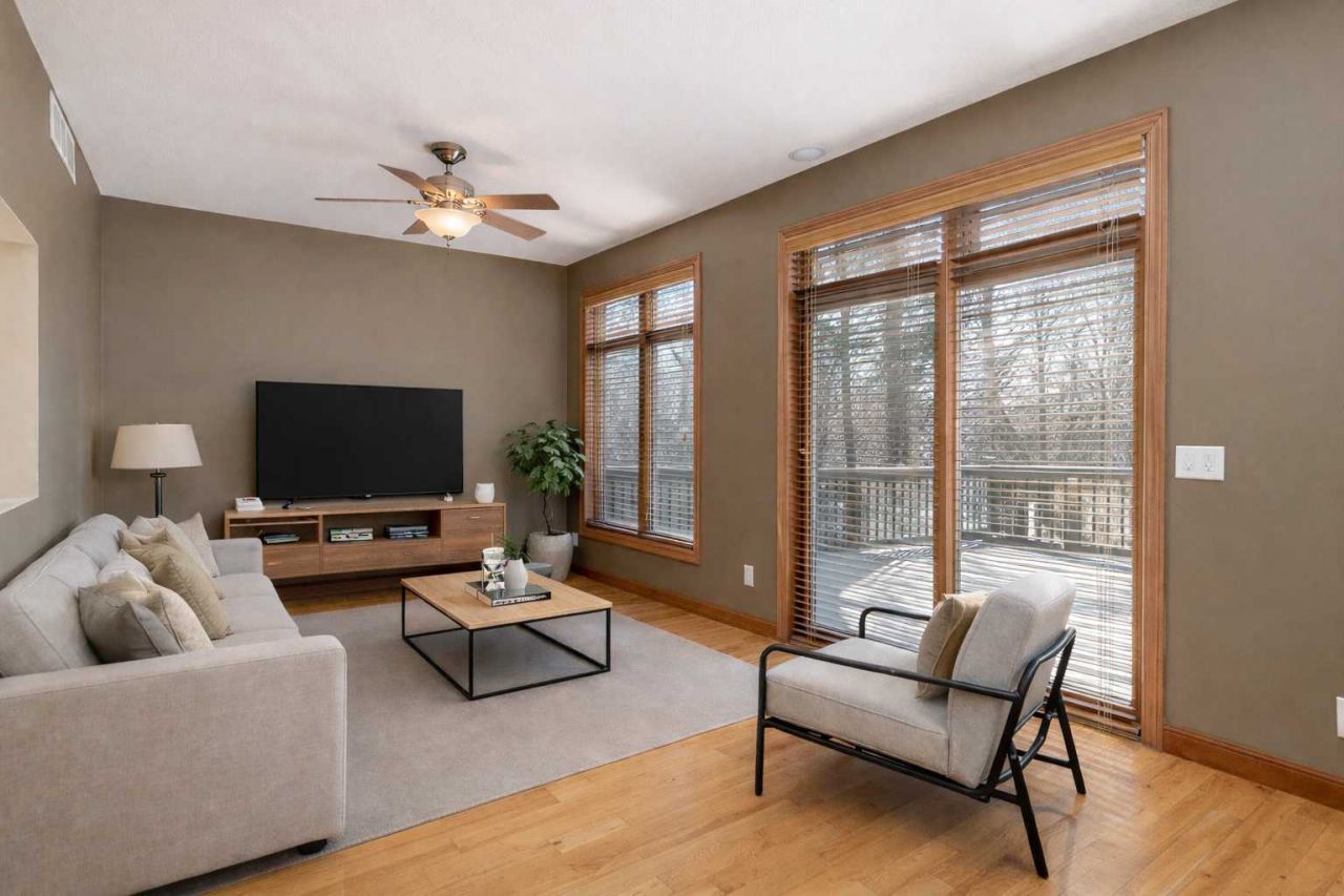 Stunning Custom-Built, One-Owner Home Just Steps from Lake Minnetonka! Nestled in Minnetrista and offering southwest lake views, this exceptional home showcases a bright, open floor plan accented by rich hickory hardwood floors. The gourmet kitchen is designed to impress, featuring stainless steel appliances including double ovens and a gas cooktop with pot filler, granite countertops, custom tile backsplash, center island with seating, built-in speakers, and abundant cherry cabinetry. The living and dining areas are filled with natural light from expansive windows and a sliding glass door that opens to a spacious maintenance-free deck with views of the lake?perfect for relaxing or entertaining. Upstairs, the inviting primary suite offers serene lake views and a large walk-thru closet that connects directly to the convenient upper-level laundry room. The private primary bath features a dual sink vanity, corner whirlpool tub, and separate glass-enclosed tiled shower. Two additional generously sized bedrooms and a full bath with dual sinks complete the second level. The 'tree top' third floor provides incredible flexibility with a large bonus room and 2 more bedrooms. The walk-out lower level is built for entertaining, featuring in-floor heat, a media room with 6.1 surround sound, a rustic pine bar with matching bar stools, and a ¾ bath with tiled shower. Step outside to the expansive paver patio, pre-wired with 50-amp service for a future hot tub and enjoy the fenced backyard with a built-in paver fire pit area. Additional highlights include James Hardie siding, Pella windows, custom wood blinds thru-out, and a newer high-efficiency zoned furnace (2022) for optimal comfort on every level. Ideally located just minutes from lakeside dining & Shoreline Drive that meanders along the Lake to access Hwys 12/394 & 494.