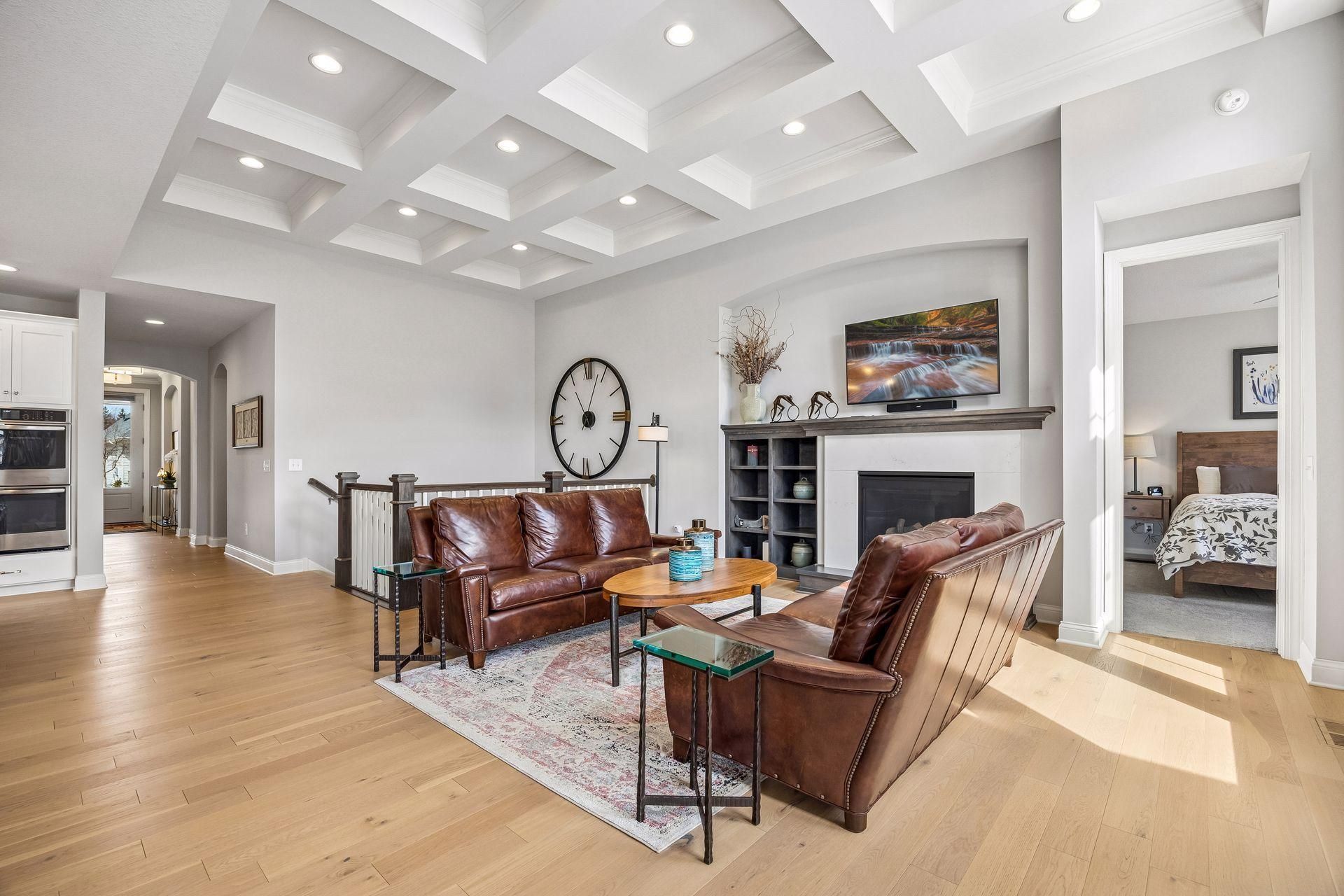 Welcome to this spacious one-level living home designed for comfort and ease. Hardwood floors flow from the entry throughout the main level, complementing the open floor plan. The gourmet kitchen offers ample counter space and a pantry, opening to a large living room with a gas fireplace and an informal dining area. At the back of the living space, step into the sun filled four-season sitting room. Tucked away at the back of the home, the primary suite provides a peaceful retreat with a fully tiled shower, deep soaking tub, and walk-in closet. Step onto the recently refinished deck to enjoy morning coffee at sunrise or unwind as the sun sets. The lower level features two additional bedrooms, workout/craft room, a ¾ bathroom, and a comfortable living room?perfect for movie nights or guests. Take advantage of the flex room by the front entry that can be used as a home office, play room or guest bedroom.