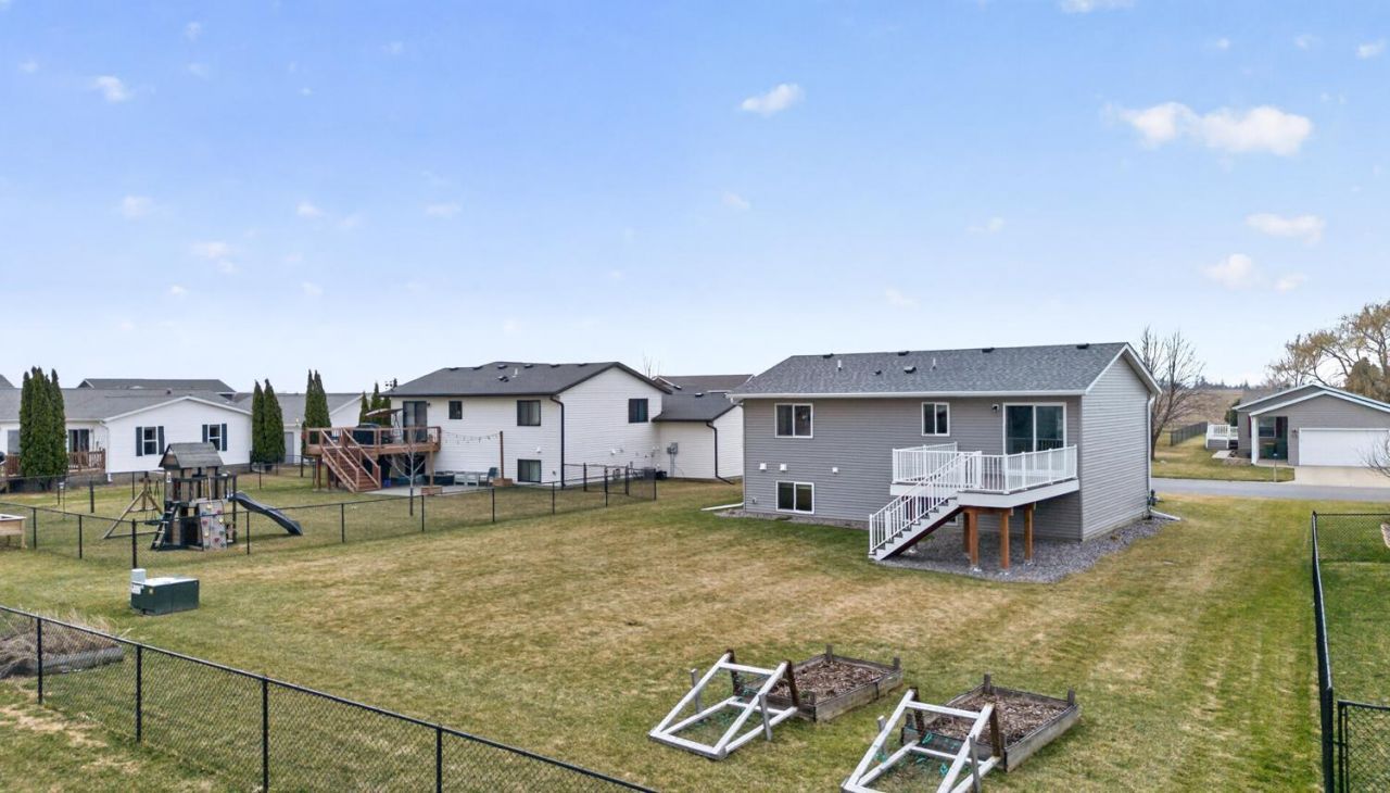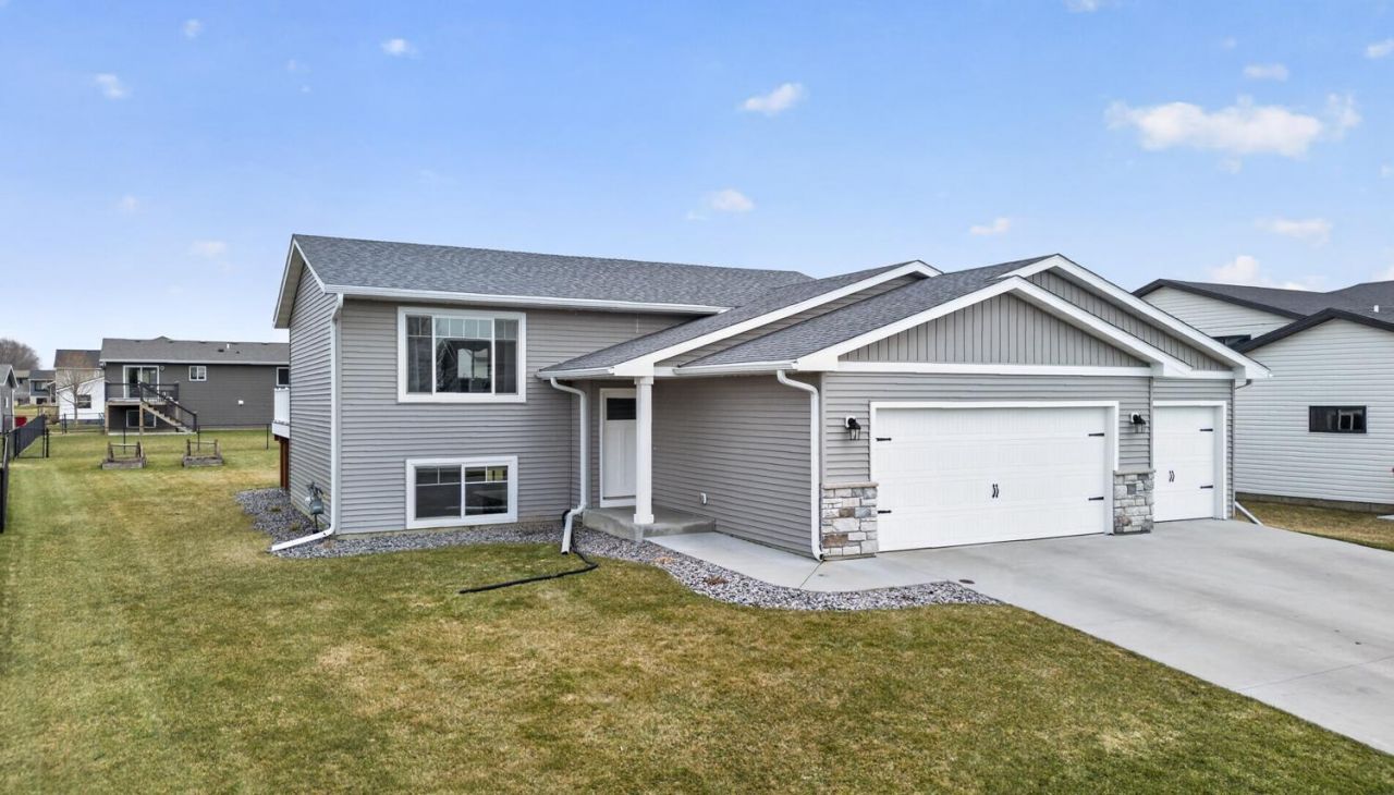 Built in 2017 and meticulously maintained, this move-in ready split-level home is clean as a whistle and shows pride of ownership throughout. Fresh interior paint creates a bright, welcoming feel, while the finished basement (completed in 2019) adds valuable living space perfect for relaxing, entertaining, or working from home. Major updates provide peace of mind, including a new roof in 2025. The heated 3-car garage is a standout feature-ideal for Minnesota winters and extra storage. Outside, enjoy a large, beautifully landscaped yard with garden beds ready for your green thumb and a stunning maintenance-free deck, perfect for summer gatherings. A spacious concrete driveway completes the impressive exterior. This well-cared-for home with great indoor and outdoor space makes it easy for the new owner to enjoy and settle into from day one!