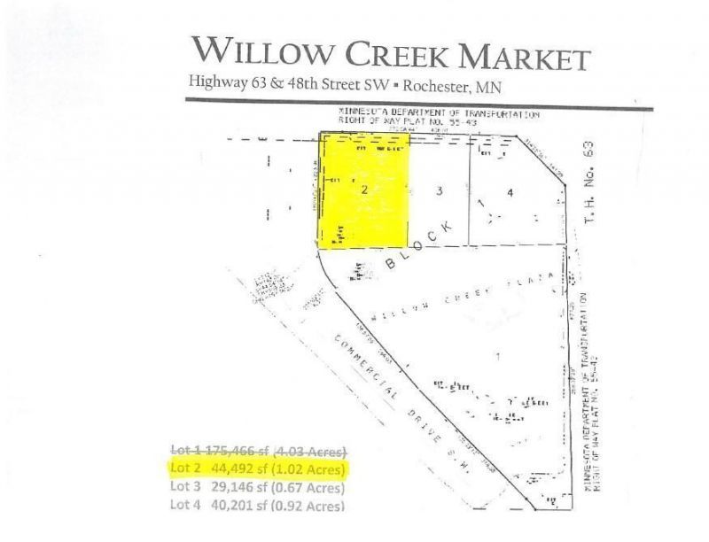 Excellent 1.02-Acre commercial lot in an expanding SW Rochester location. High traffic, high visibility location just off 48th St SW and Hwy 63 South.