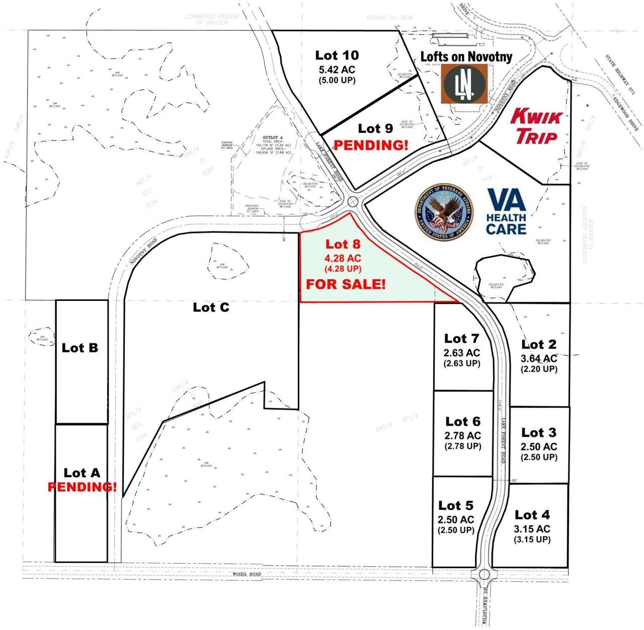 This land located at Lot 8 Novotny Road, Baxter, MN 56425 is currently listed for sale with an asking price of $2,140,000. The property has approximately 4.28 Acres. Lot 8 Novotny Road is located within the Brainerd school district. Search Baxter real estate on www.counselorrealty.com today.